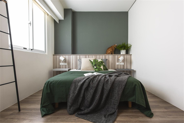 主卧以中性色调为主,淡灰色墙面+原木色地板组合,柔软舒适的床品,搭配精致的软装,打造温馨惬意的睡眠空间。精心挑选的绿植,为空间增添一份清新和舒适感。