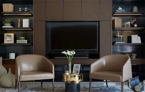 中性色调的墙面与豪华材质的家具,加上大量棕色点缀,营造出高雅而舒适的氛围。精致的照明设计和选用的艺术装饰品增添了层次感,让客厅更加引人注目。无论是休闲娱乐还是款待宾客,都能带来无与伦比的享受。