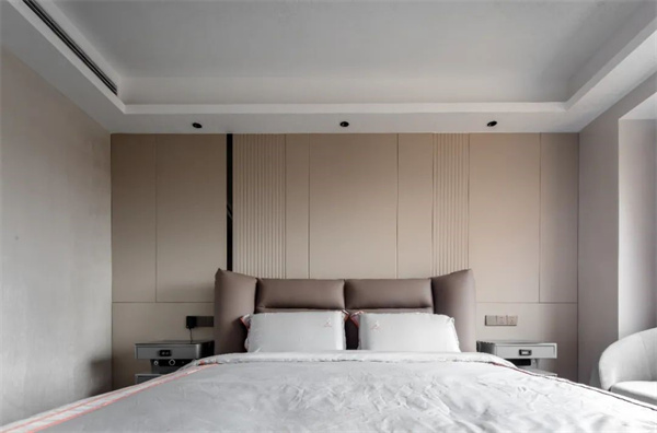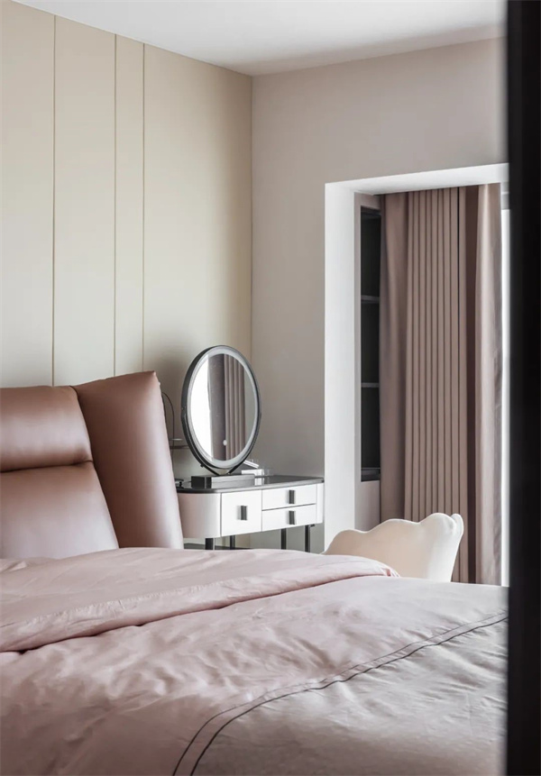 卧室的设计上用了简约的线条为核心元素,意式轻奢风在讲述真正的永恒经典,柔软的床和精致的床头装饰营造出豪华的感觉,搭配丝绸质地的床品和柔和的色彩,营造出温馨而舒适的睡眠环境。