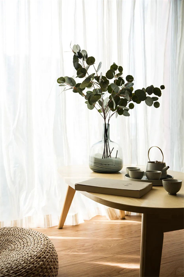 阳台铺设着浅色原木地板,阳光透过玻璃窗洒满整个空间,再点缀几盆绿植,生机勃勃的绿意与原木色调相互映衬,为空间注入了自然的活力。