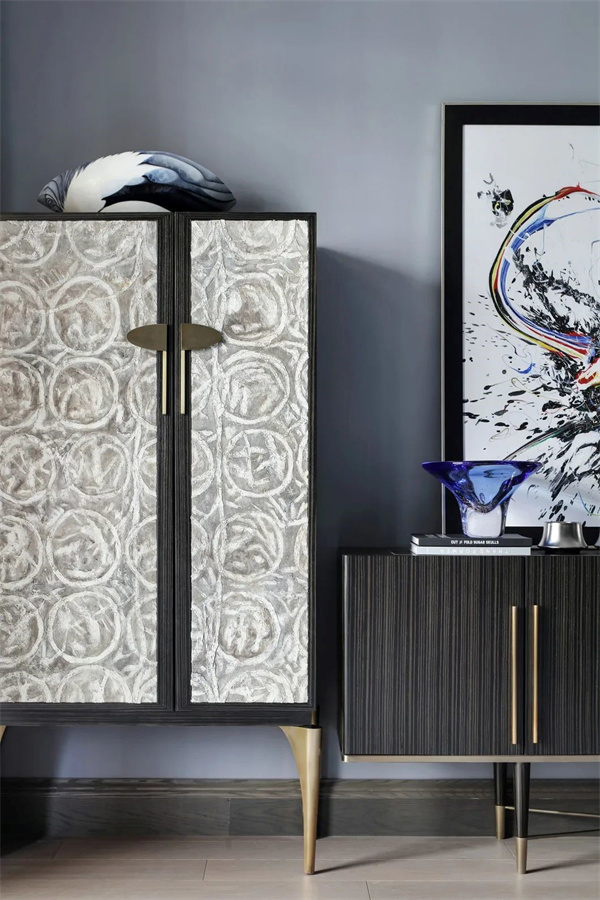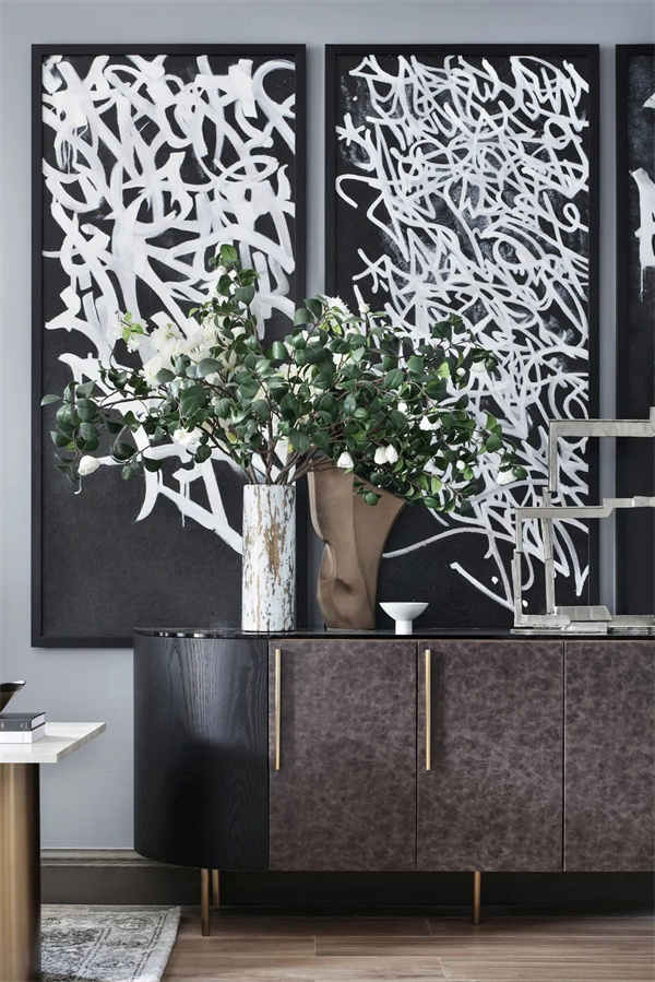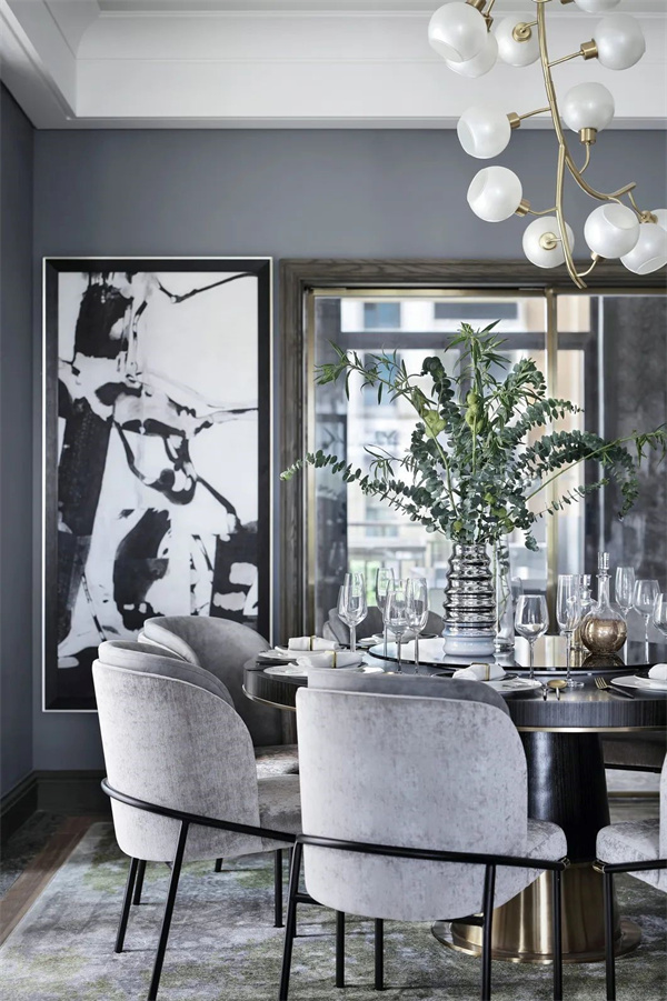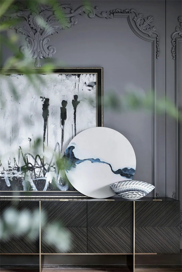 法式风格带来优雅与浪漫的生活氛围,本案整体空间色调以柔和的米白、浅灰为主,搭配精致的雕花墙面,在装饰上辅以油画、绿植和花卉摆设,让整个家居洋溢着自然和艺术的气息,将法式优雅与生活品位完美结合。